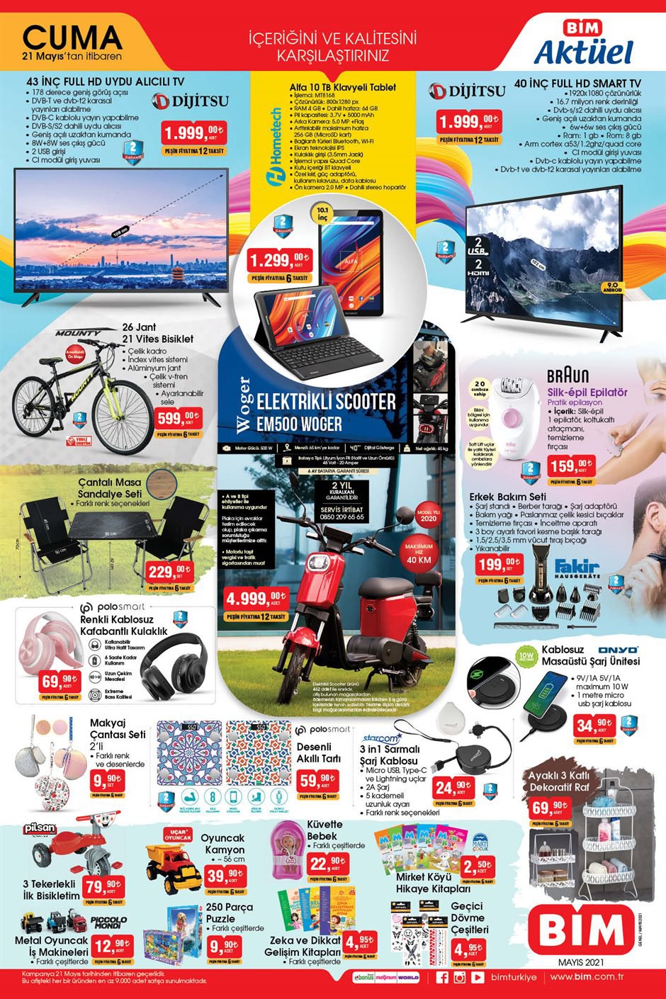 Bim 21 Mayıs 2021 Aktüel Ürünler Kataloğu yayınlandı. Yeni indirimli ürünler broşüründe Dijitsu 43″ Full HD Uydu Alıcılı Tv, Hometech Alfa 10 TB Klavyeli Tablet, Dijitsu 40″ Full HD Smart Tv, Mounty 26 Jant 21 Vites Bisiklet, Woger EM500 Elektrikli Scooter, Çantalı Masalı Sandalye Seti, Polosmart Renkli Kablosuz Kafa bantlı Kulaklık bulunuyor. Ürünlerin tamamı ve fiyatları için broşürleri inceleyebilirsiniz.