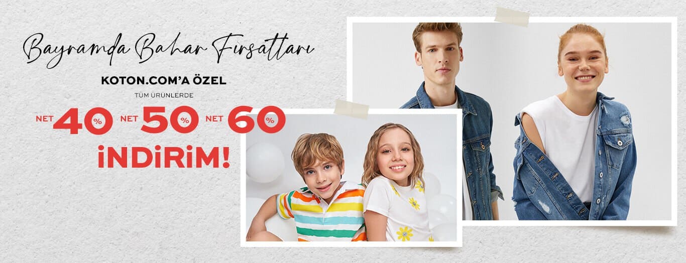 Koton'da bayrama özel bahar fırsatları başladı. Çeşitli giyim ürünlerinde geçerli fırsatlardan faydalanarak dolabınızı yenileyebilirsiniz. Net %40, %50 ve %60 indirimler sizi bekliyor. İndirimleri keşfetmek için tıklayın.