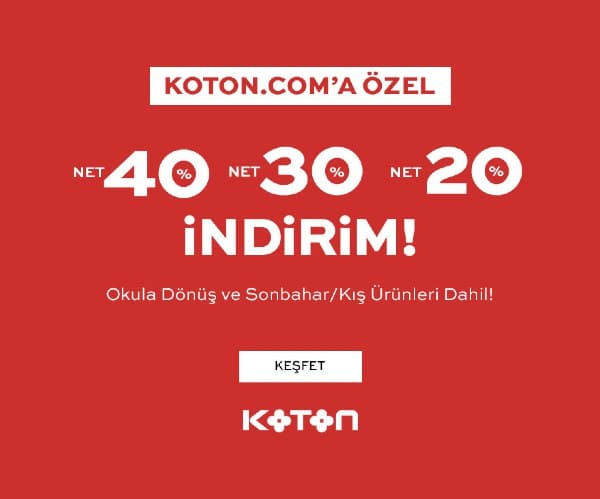 koton.com' da okula dönüş, sonbahar-kış ürünleri dahil %40 a varan indirim fırsatını kaçırmayın.