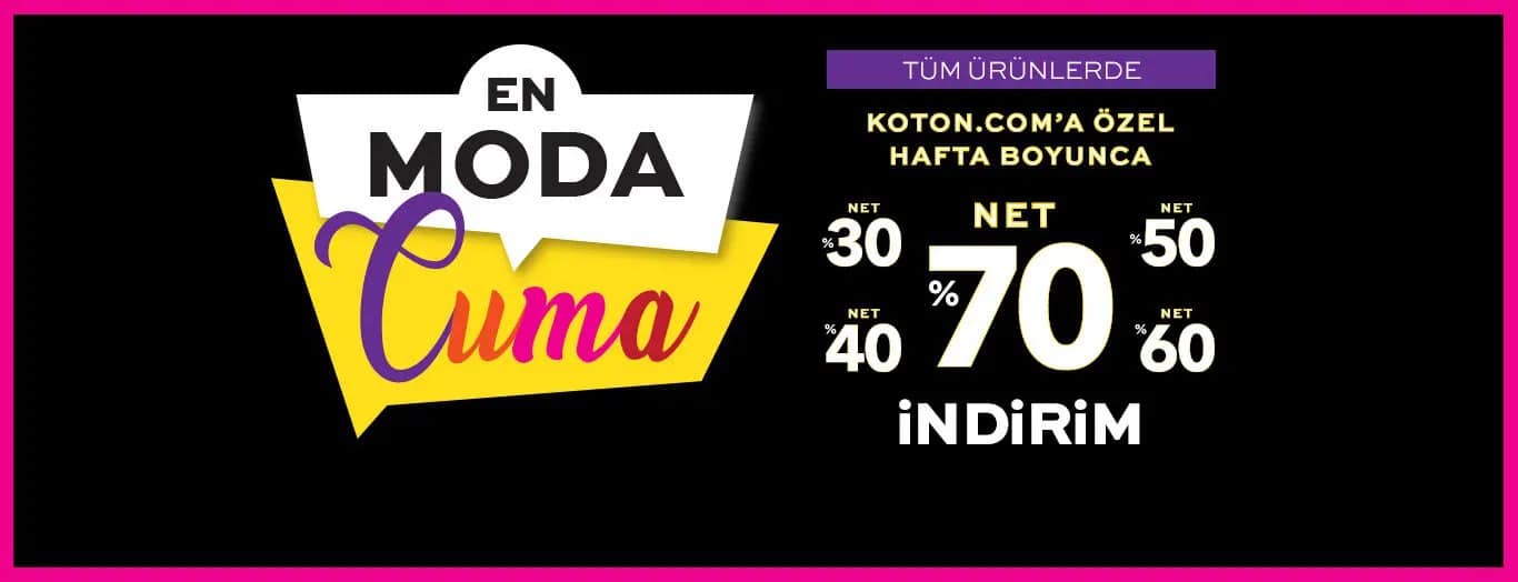 Koton'da kadın giyim, erkek giyim, kız çocuk ve erkek çocuk giyim kategorilerinde geçerli binlerce üründe geçerli %40, %50, %60 ve %70 indirim fırsatları sizleri bekliyor! Yeni sezonda tarzınıza yenilik katmak için hemen koton.com'a gelin, alışverişin keyfini doyasıya yaşayın.