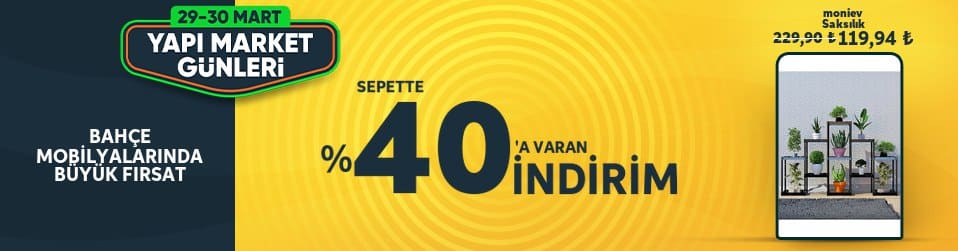 Bahçe mobilyaları ve ekipmanları, saksılıklar, salıncaklar ve daha pek çok ürün Trendyol Yapı Market Günleri'ne özel indirimli fiyatlarla…