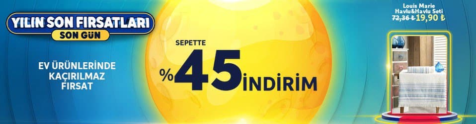 Ev tekstil ürünleri, sofra ürünleri, mutfak araç ve gereçleri, banyo aksesuarları, temizlik gereçleri ve çok daha fazlası… Her evin ihtiyacı olan binlerce üründe geçerli yılın son fırsatlarını kaçırmayın. Bugün, son gün!