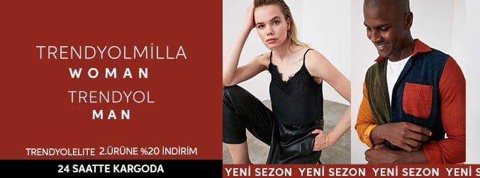 Trendyolmilla & Trendyol Man Yeni Sezon İndirimleri başladı.Üstelik ikinci ürüne %20 indirim ve 24 saatte kargo fırsatıyla.